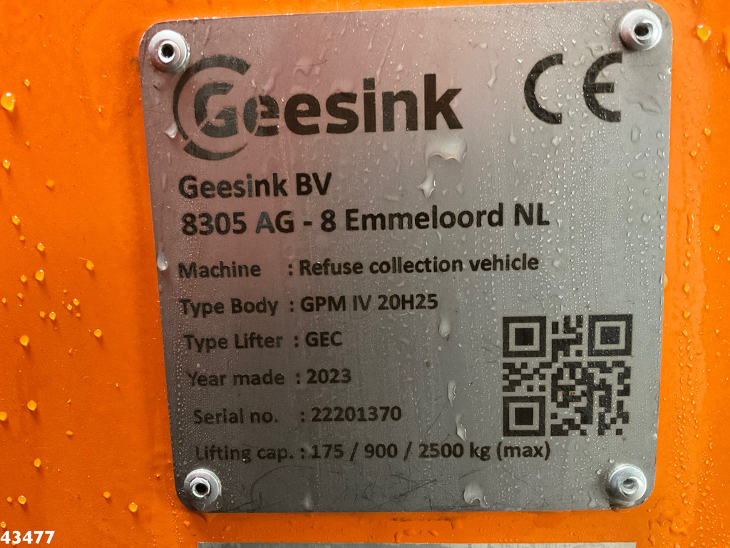 - Aufbau: Geesink (Typ GPM IV 20H25), 20m³- Schuttung: GEC (DIN, Geesink, Kam)
