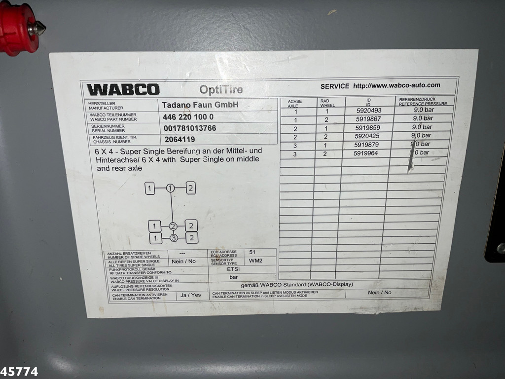 - Gegengewichte vorhanden: 1,2 + 2,9 + 0,9 + 0,9 + 1,3 + 0,8 Tonnen