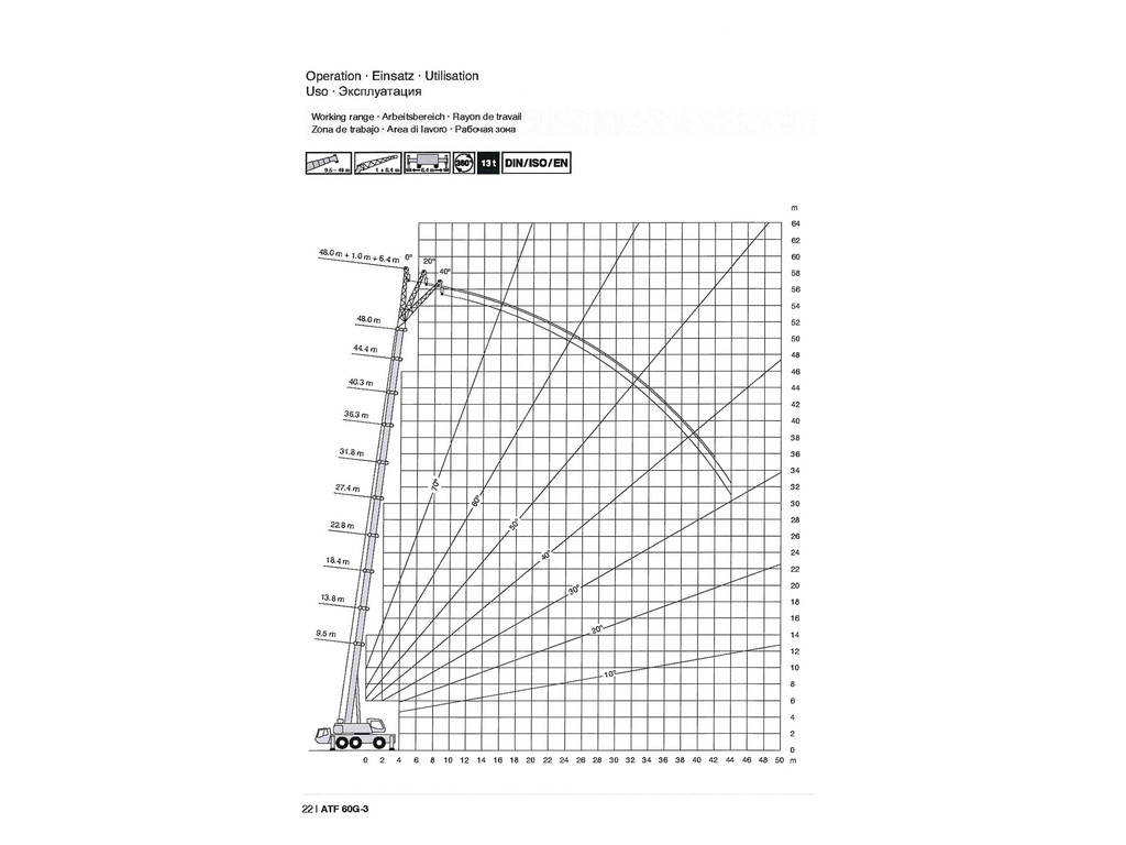 - Maximale Arbeitshöhe ohne ausgefahrenen Fly-Jib 51 Meter