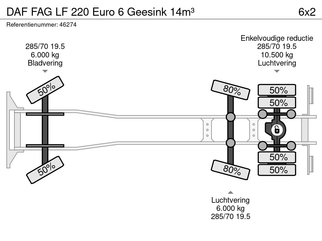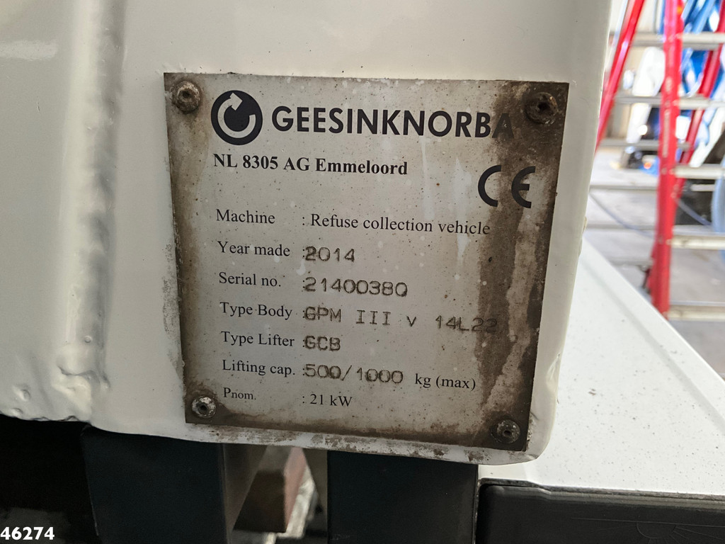 - Construcción: Geesink (tipo: GPM III V 14L22), 14 m³- Carga: GCB (DIN, peine, Geesink)