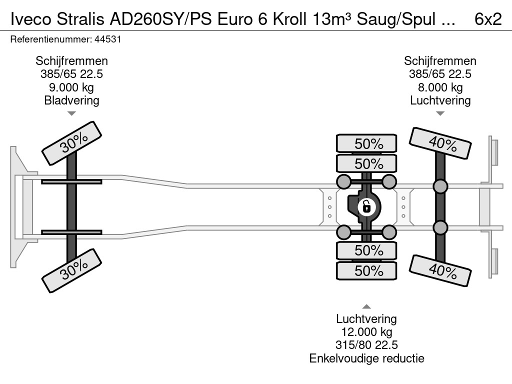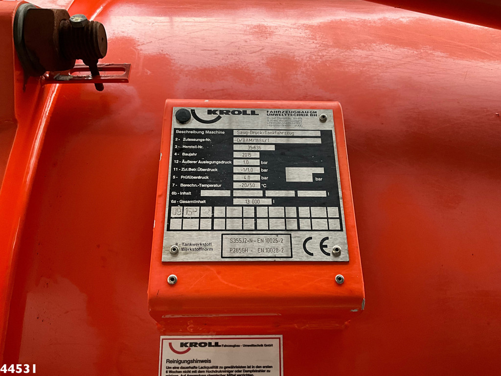 - Kroll (tipo: 35636) Construcción de succión/descarga- Capacidad total: 13.000 litros