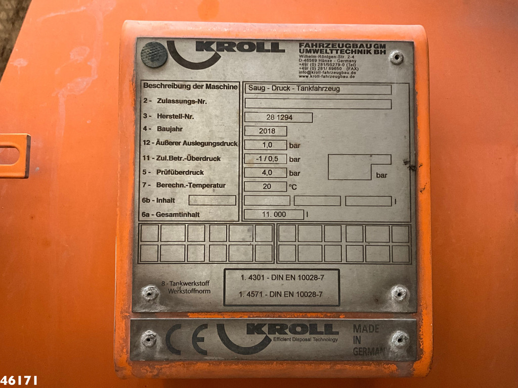 - Succión de sumideros Kroll Combi (tipo: 281249)- Capacidad: 11 000 litros