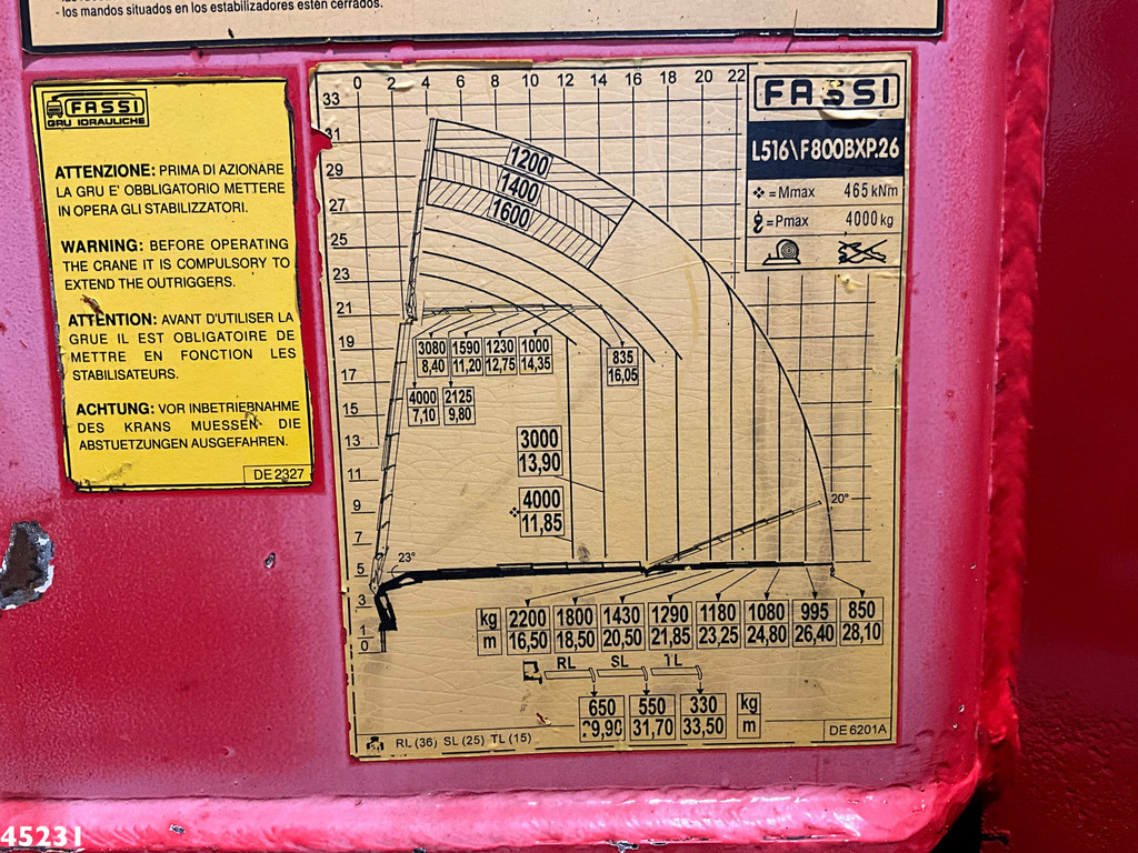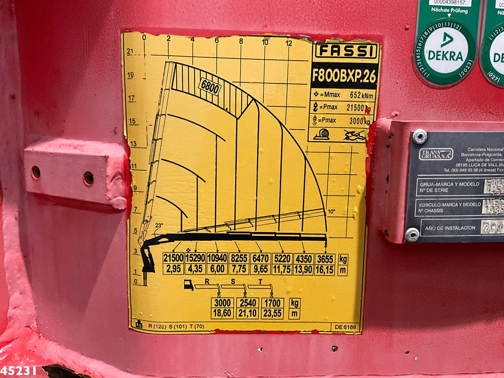 - Grue de chargement Fassi 80 Tonmeter (type : 800BXP.26)- 6 x extensibles hydrauliquement