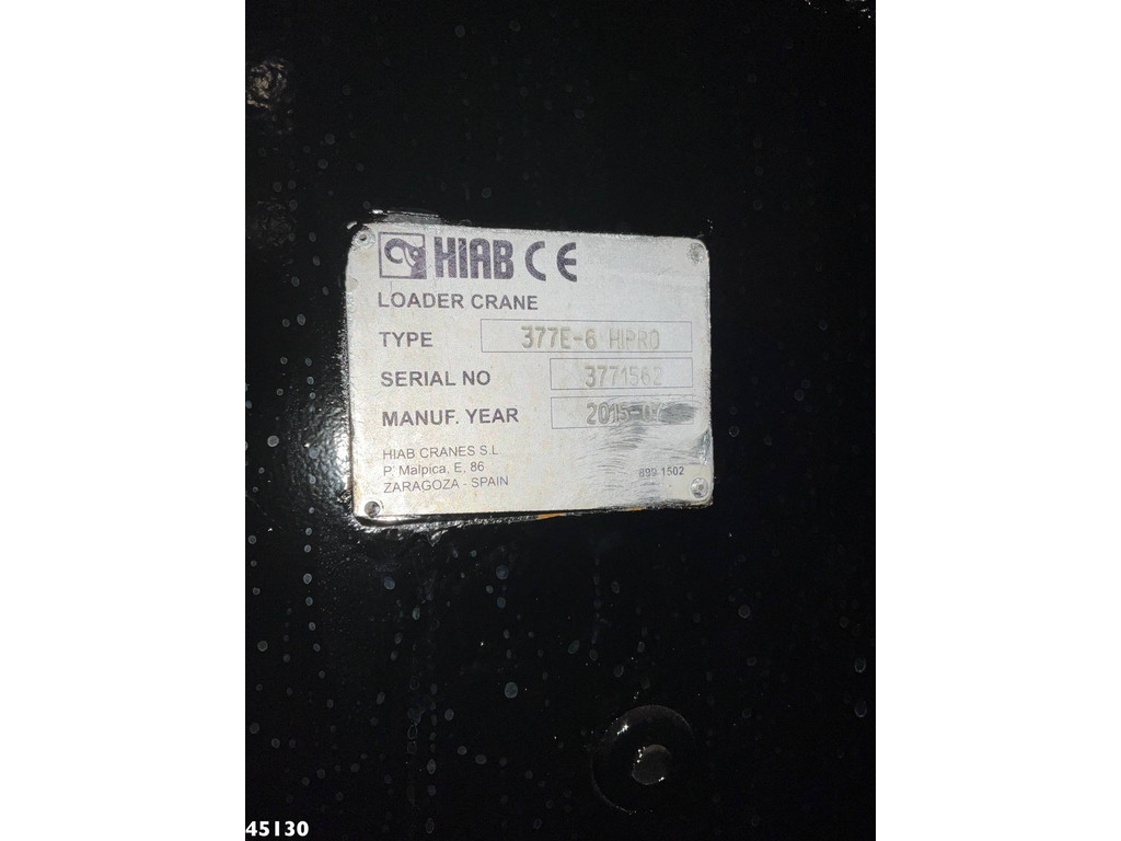 - Grue de chargement Hiab de 37 tonnes-mètres (type : 377 E6-Hipro)- 6 x extensions hydrauliques