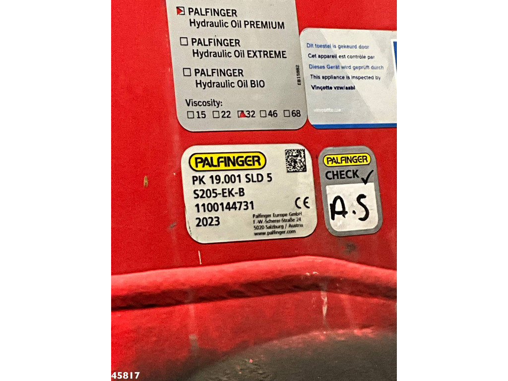 - Grue auxiliaire Palfinger 19 tonnes-mètre (type PK 19.001 SLD 5)- 3 x extensions hydrauliques