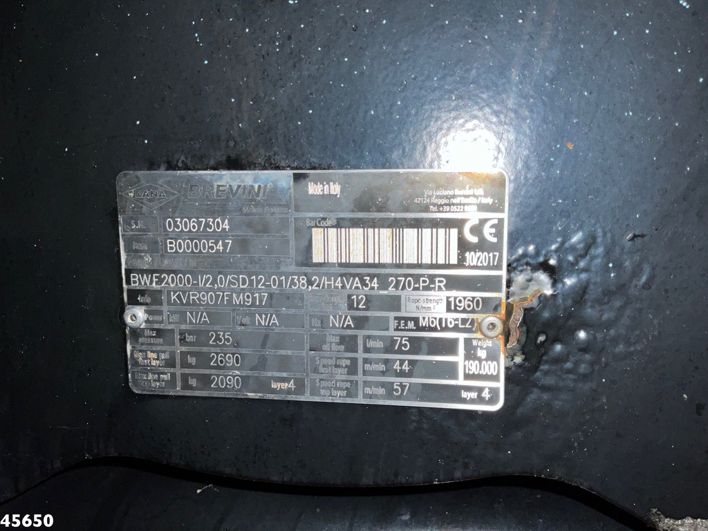 - Treuil hydraulique Brevini (type BWF2000), 2000 kg
