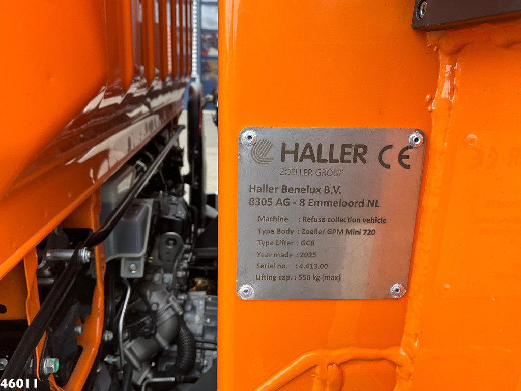 - Opbouw: Geesink (type Mini V0720), 7m³- Belading: GCB (kam, DIN)