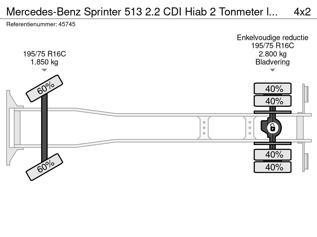 Mercedes-Benz Sprinter 513 2.2 CDI Hiab 2 Tonmeter laadkraan Just 196.629 km!
