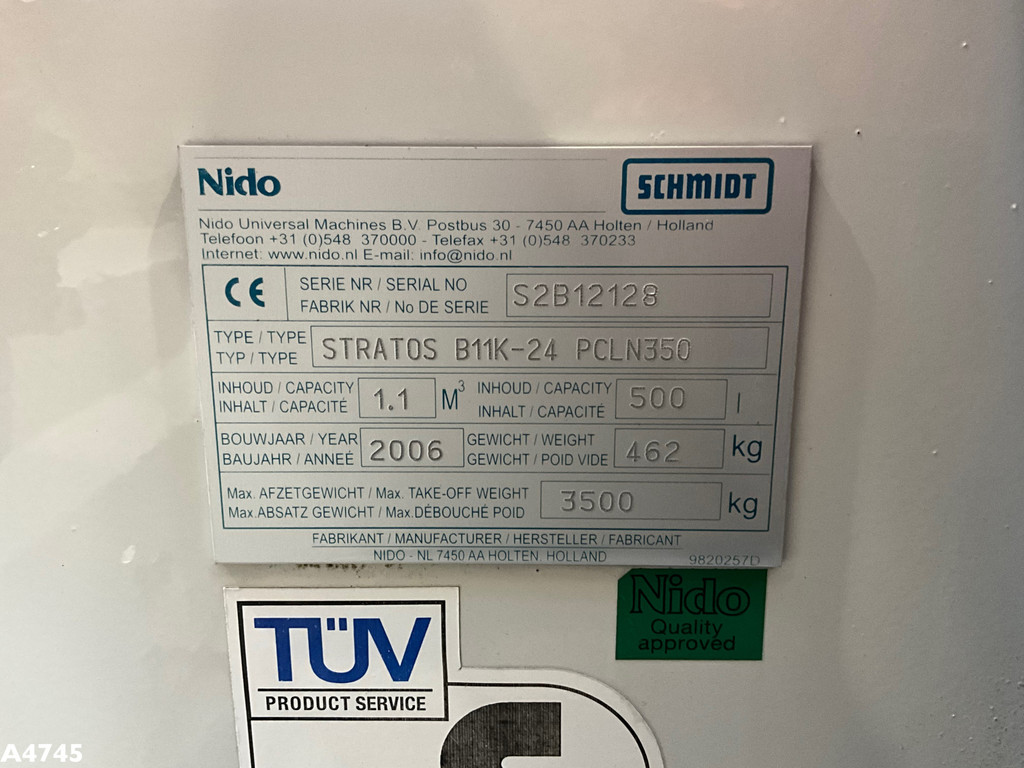 - Nido (type Stratos B11K-24 PCLN350) salt spreader- Capacity 1.1 m³