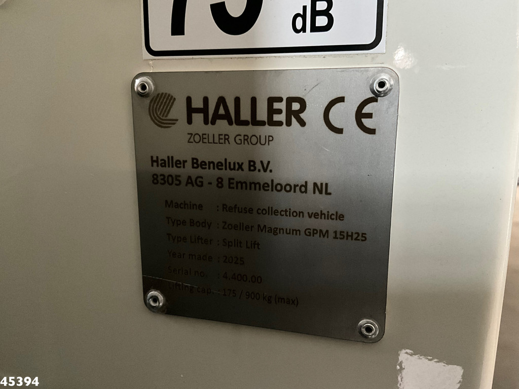 - Construction: Geesink (type: Zoeller Magnum GPM 15H25), 15m³- Loading: Split Lift (comb, DIN, Geesink)